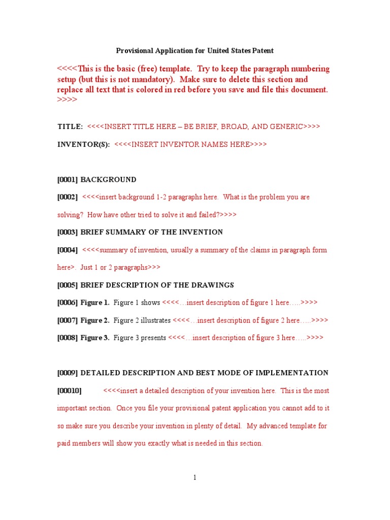 39 Provisional Patent Application Templates (Free) ᐅ TemplateLab