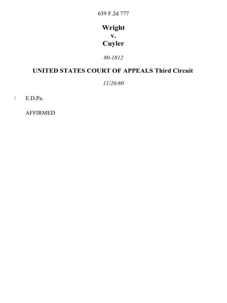 Wright v Cuyler: United States Court of Appeals Third Circuit PDF