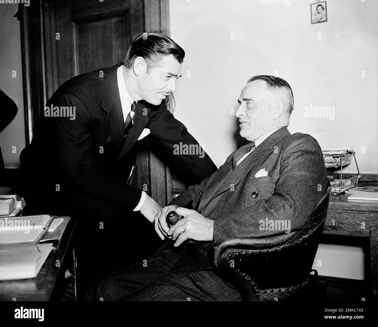 Actor Clark Gable and his father William Henry Gable right meet at