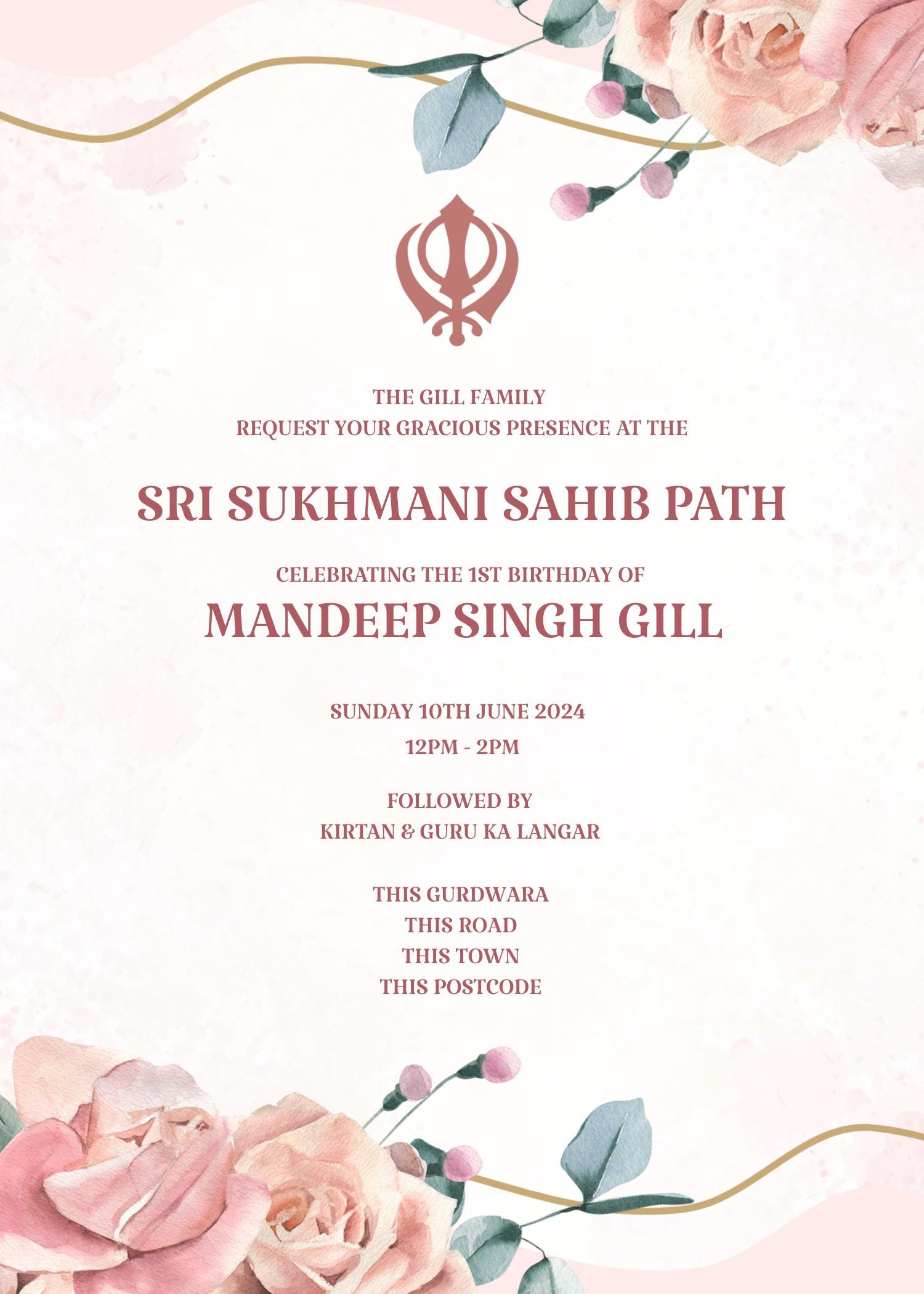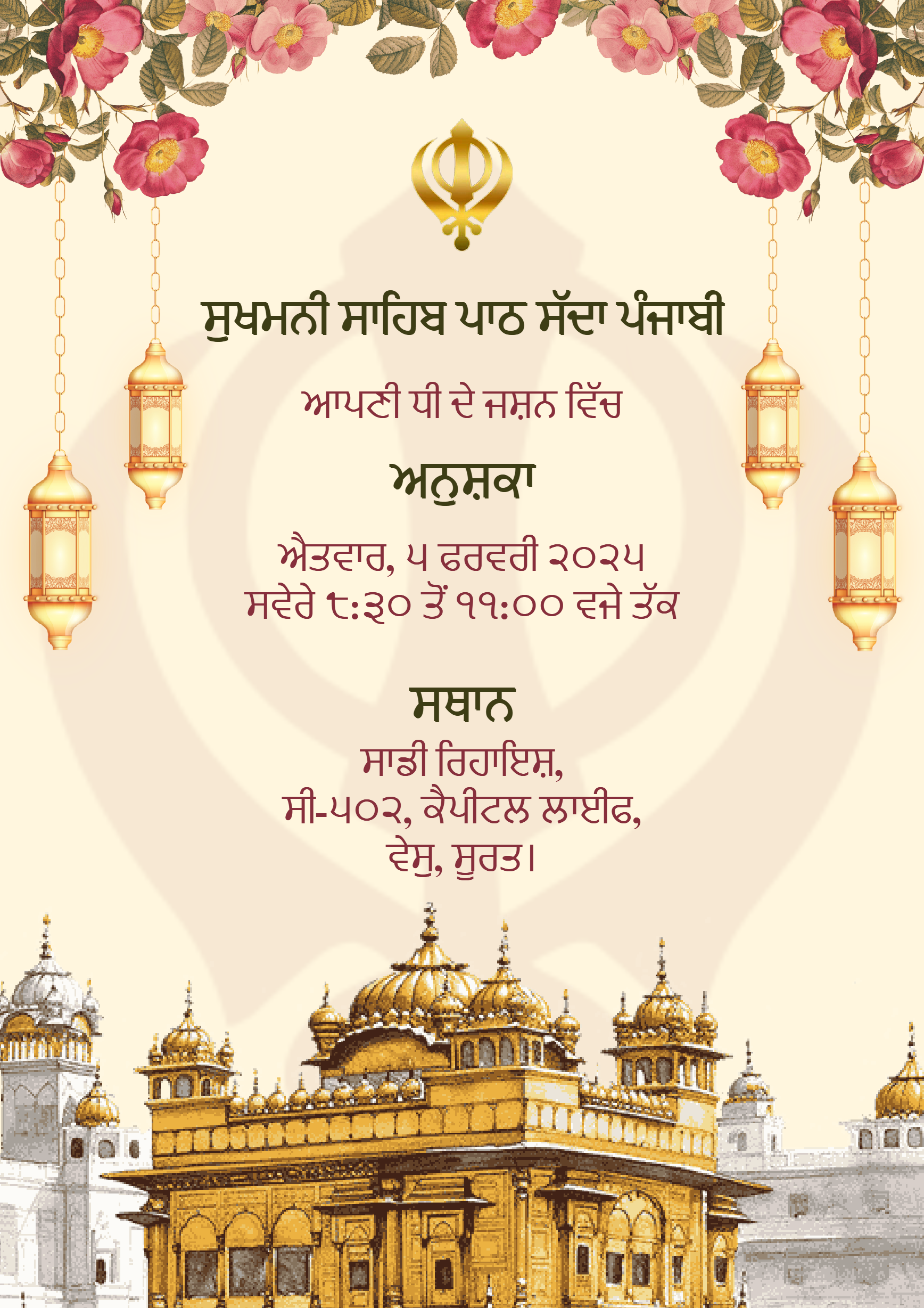 Sukhmani Sahib Path Invitation Template Digital Personalised I