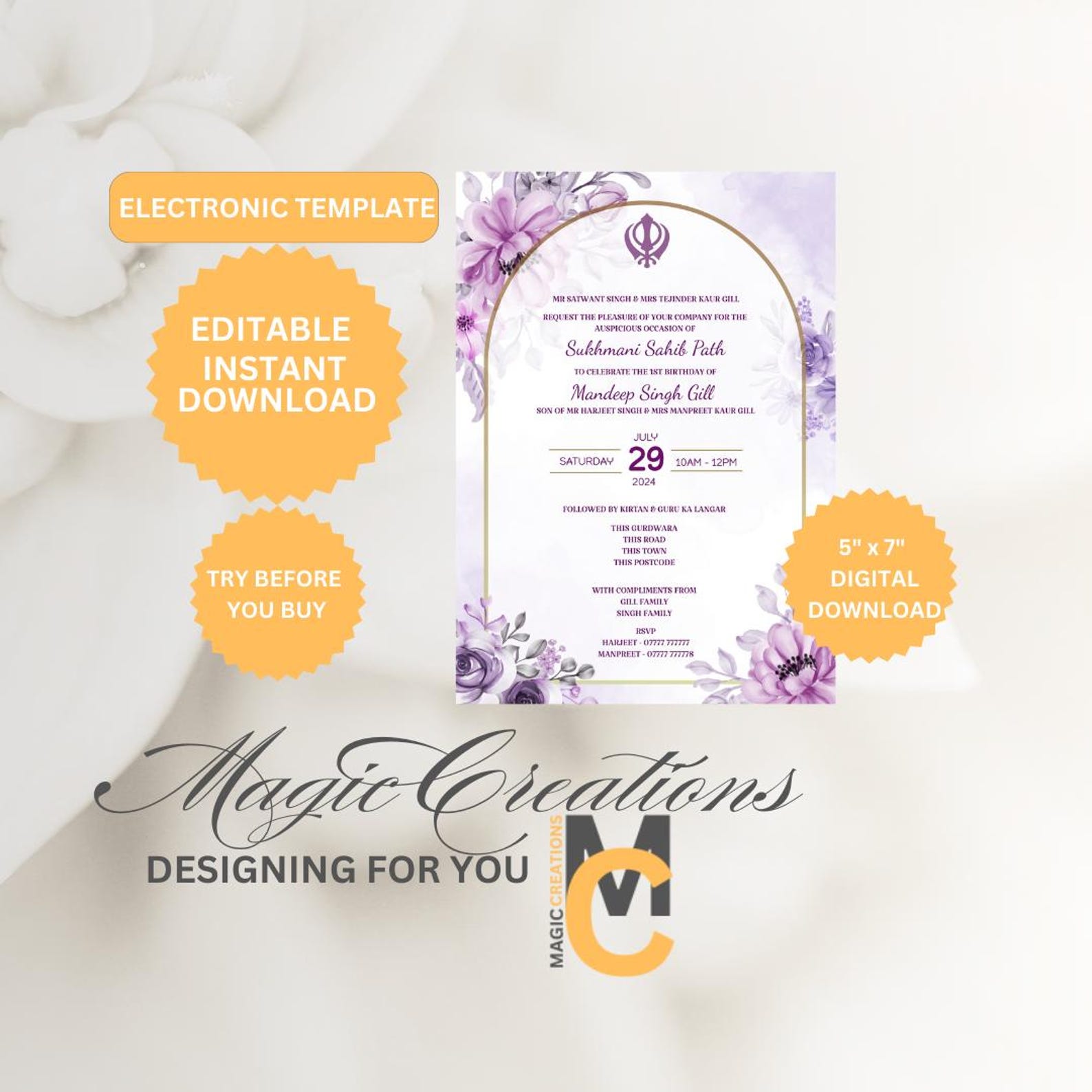 Sukhmani Sahib Path Invitation Template Digital Editable I Sukhmani