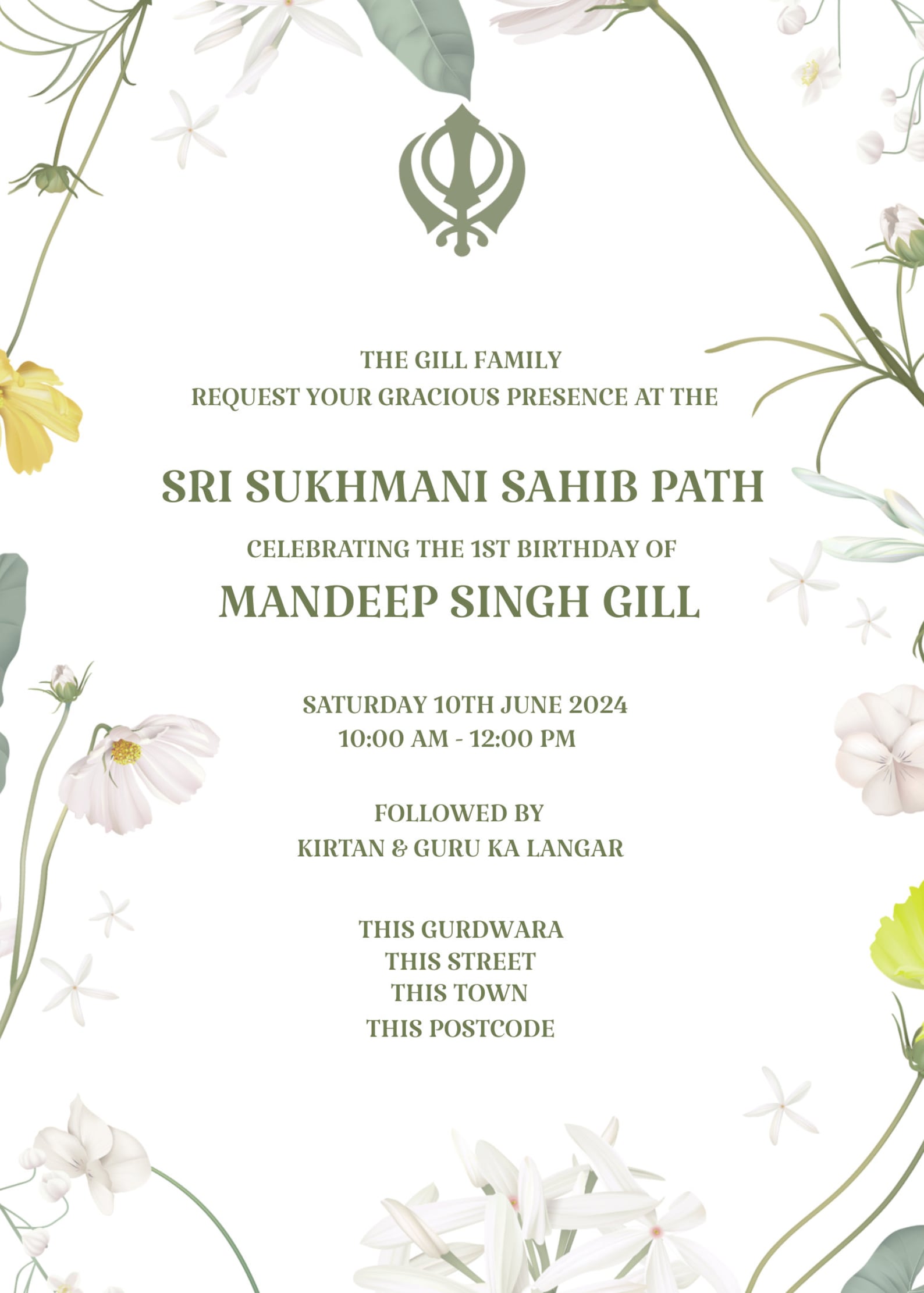 Invitation for Sukhmani Sahib Path Eternal Templates
