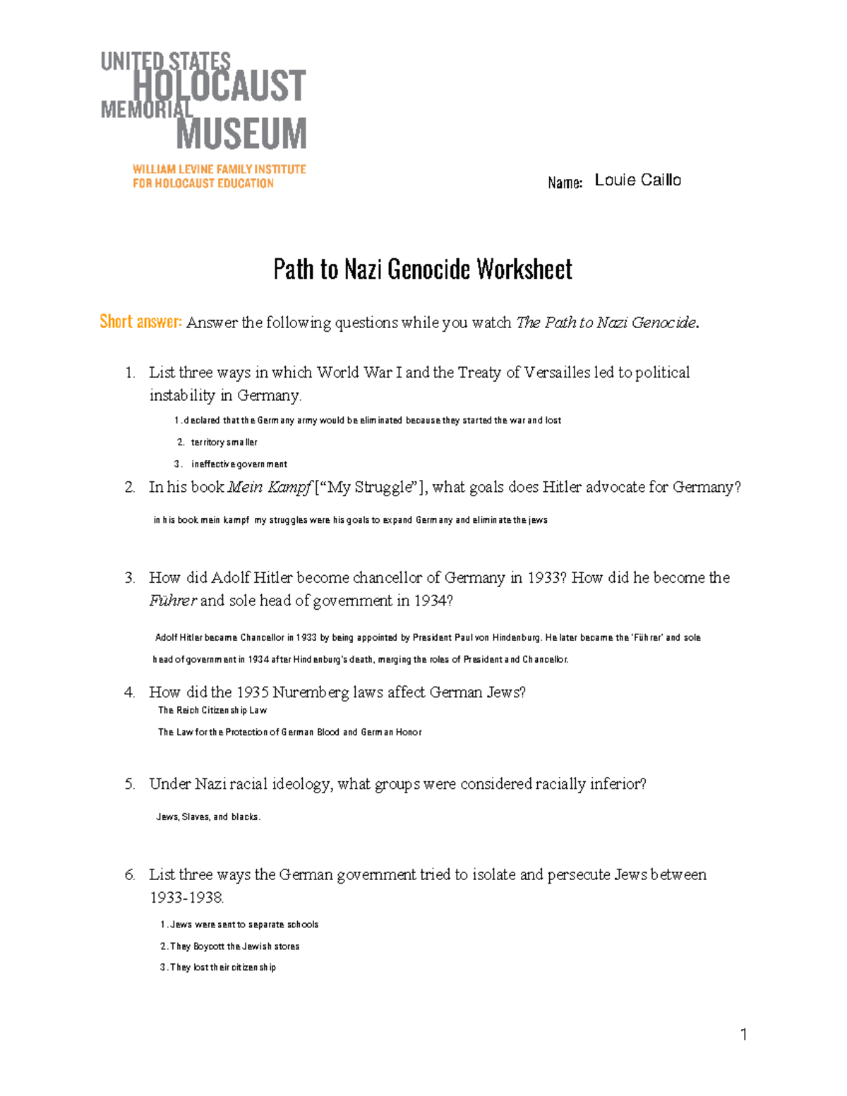 Here are some of the images for Path To Nazi Genocide Worksheet Answers that we found in our website database.