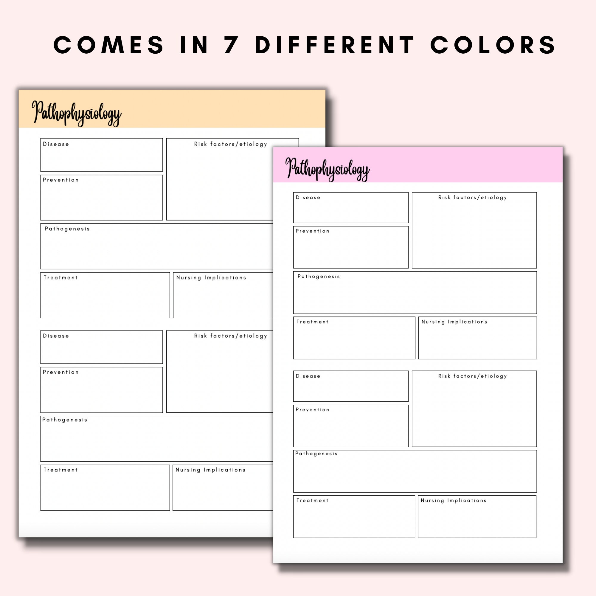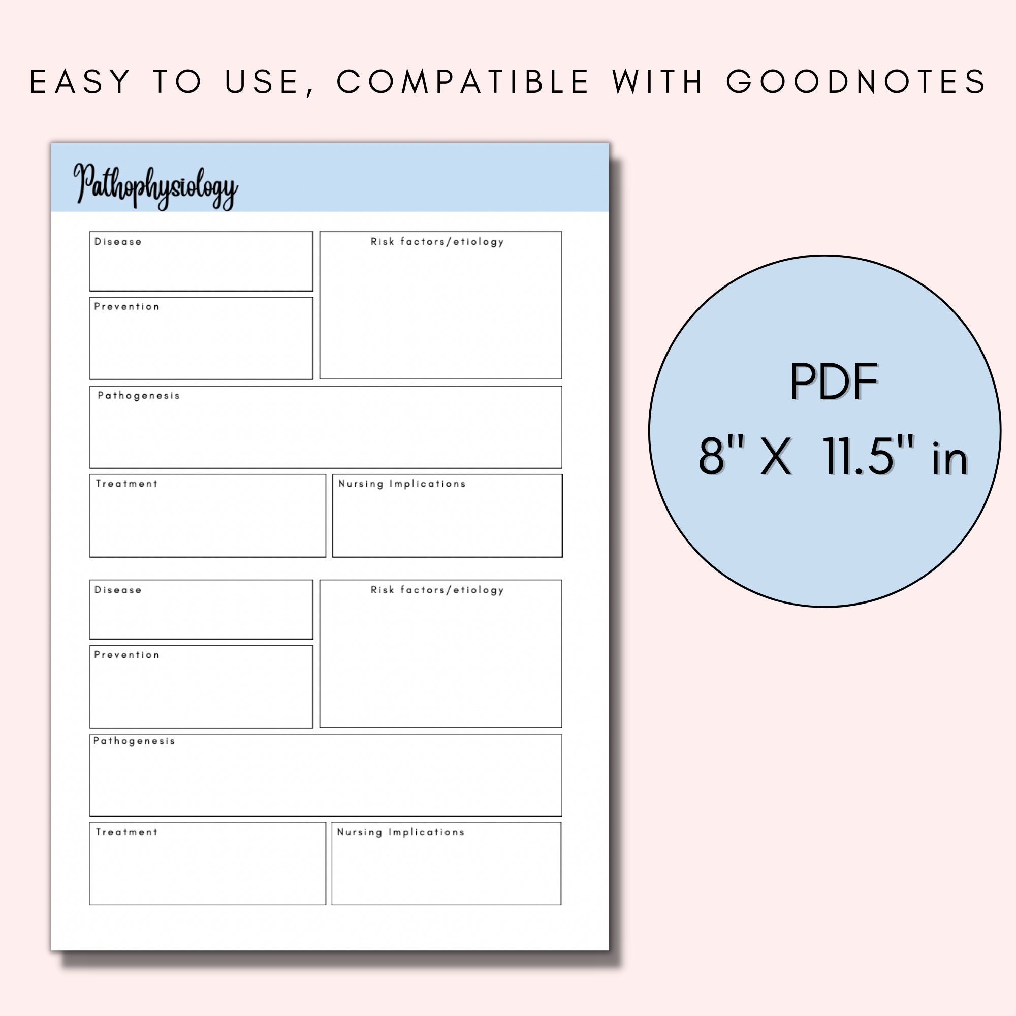 Pathophysiology disease template nursing study notes i print etsy