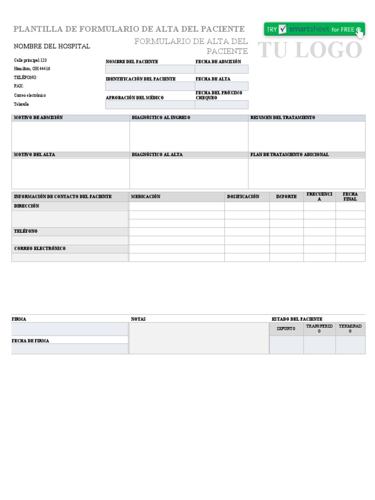 IC Patient Discharge Form Template 27219 WORD ES PDF Medicina