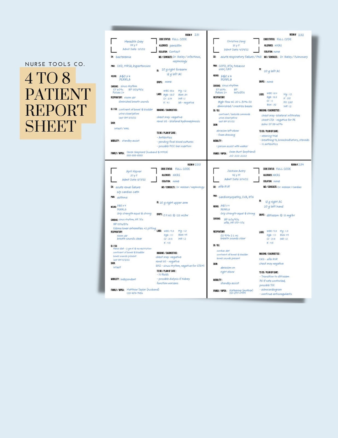 4 to 8 Patient Nurse Report Sheet/handoff Etsy