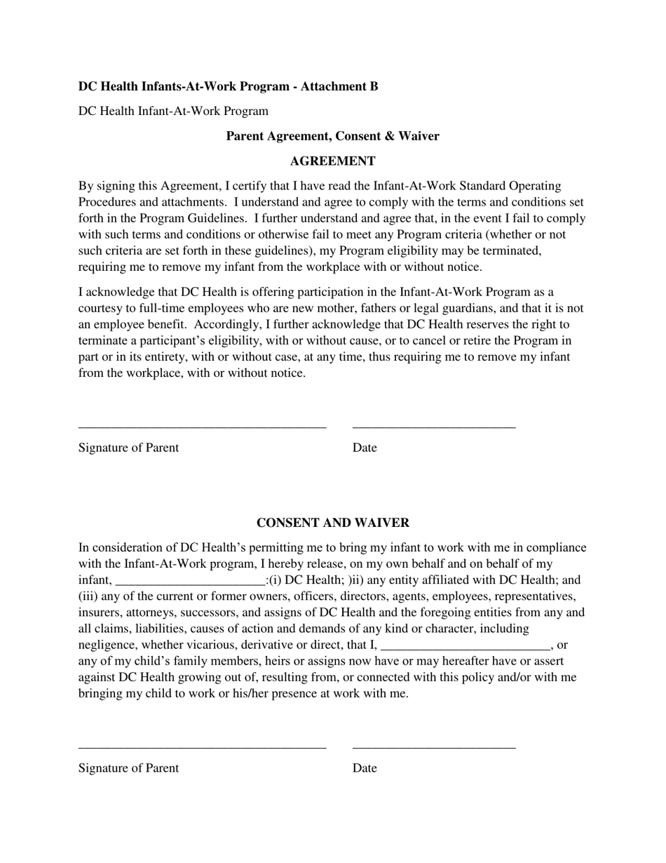 Washington D C Parent Agreement Consent and Waiver Infant At Work