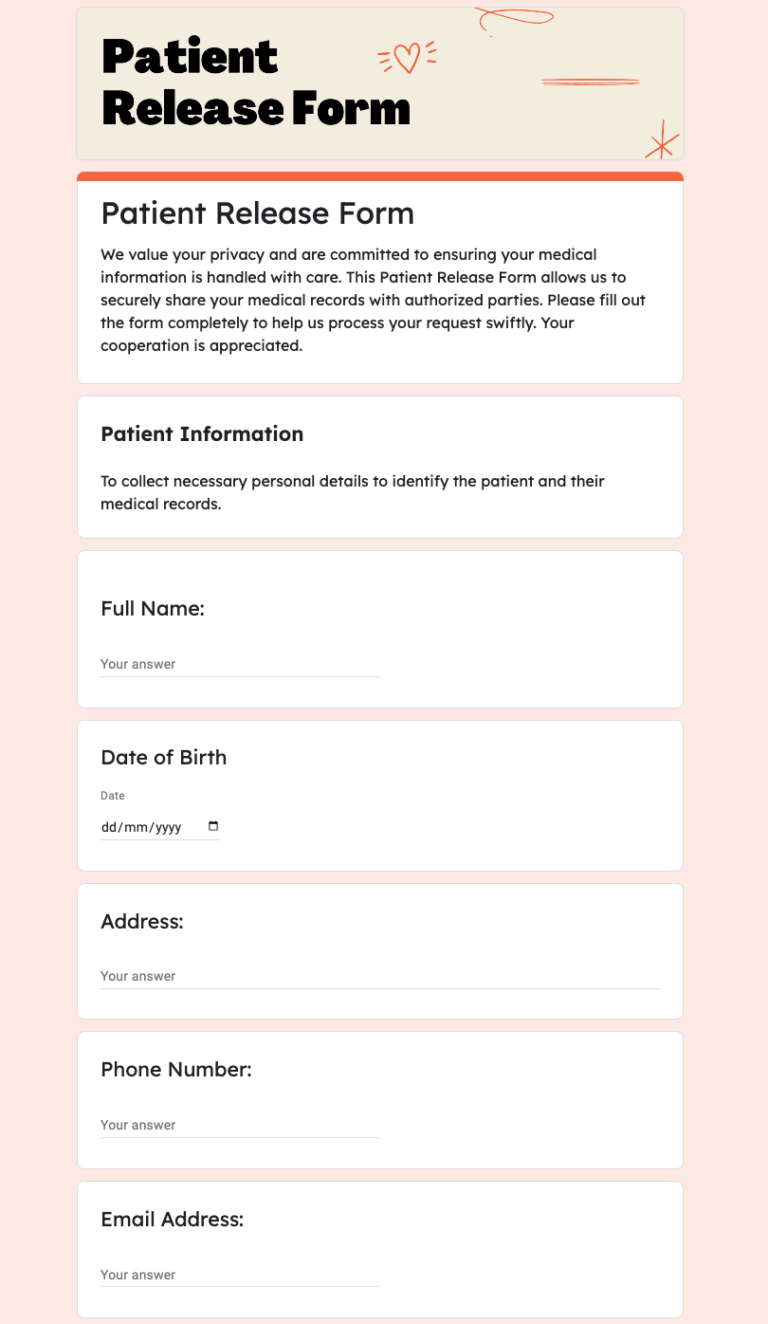 Free Patient Release Form Template in Google Forms