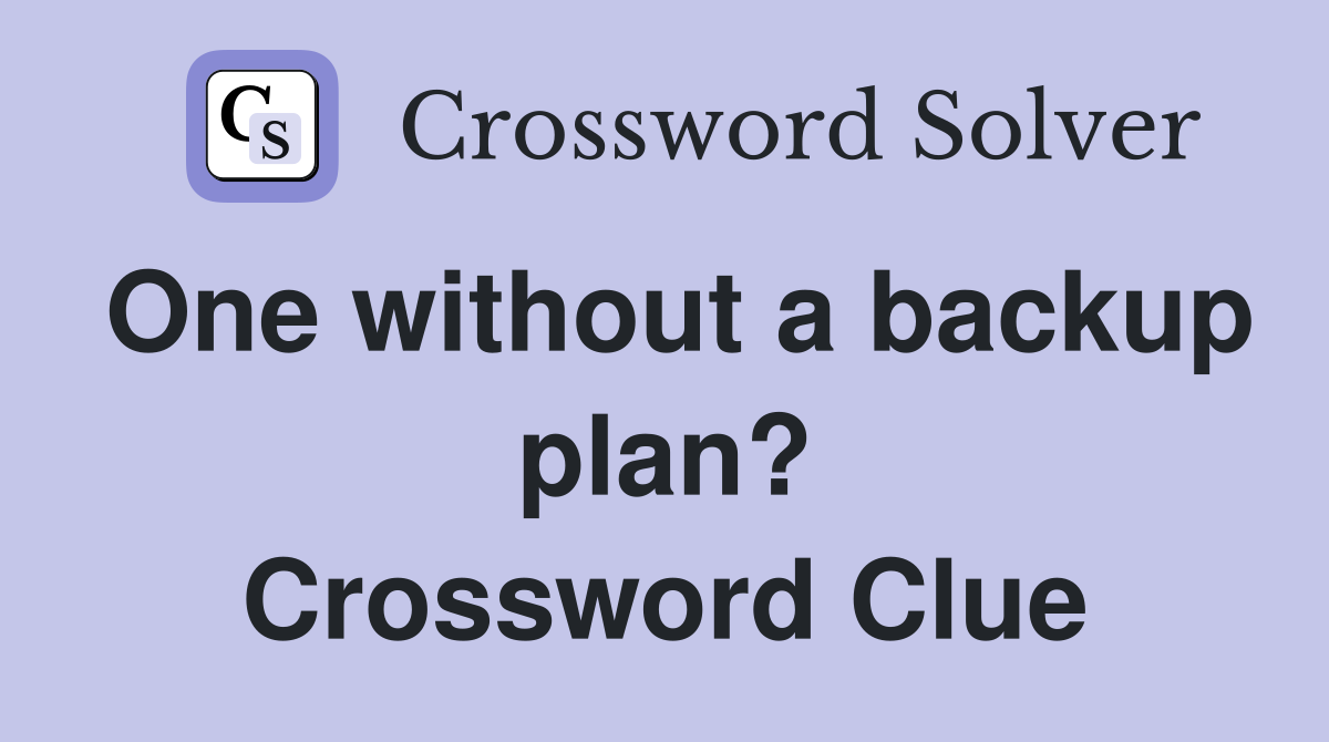One without a backup plan? Crossword Clue Answers Crossword Solver