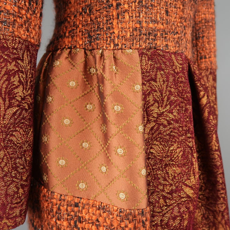ALBERTA FERRETTI Size 2 Burgundy Patchwork Wool Blend Fur Collar Coat