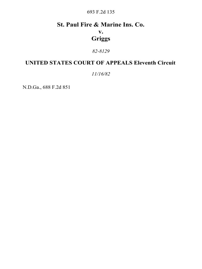 St Paul Fire Marine Ins Co v Griggs 693 F 2d 135 11th Cir