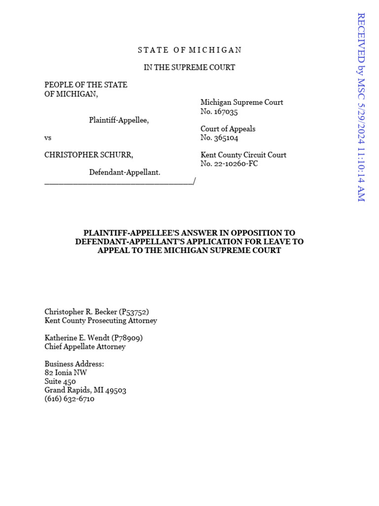Schurr Appeal to MI Supreme Court Download Free PDF Taser Appeal
