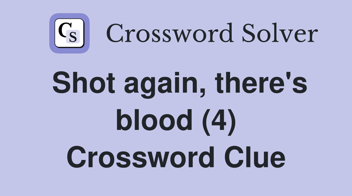 Shot again there #39 s blood (4) Crossword Clue Answers Crossword Solver