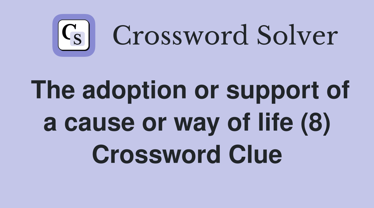 The adoption or support of a cause or way of life (8) Crossword Clue
