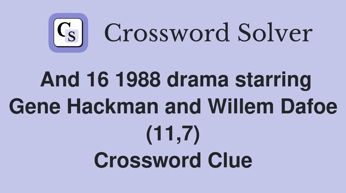 And 16 1988 drama starring Gene Hackman and Willem Dafoe (11 7