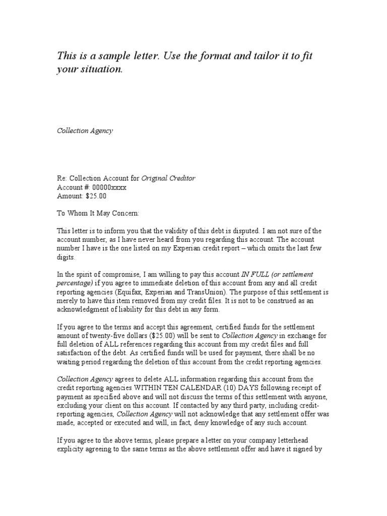 Sample Pay For Delete Letter/Pay For Deletion Letter Fill and Sign