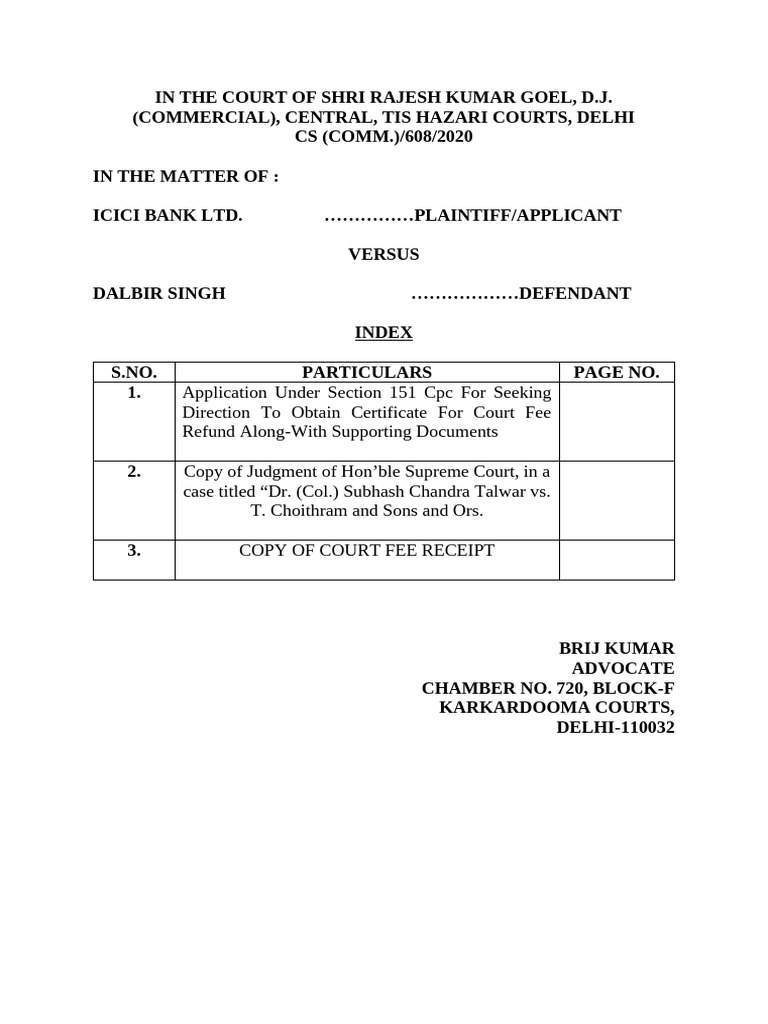 Court Fee Application Format PDF Affidavit Judgment (Law)