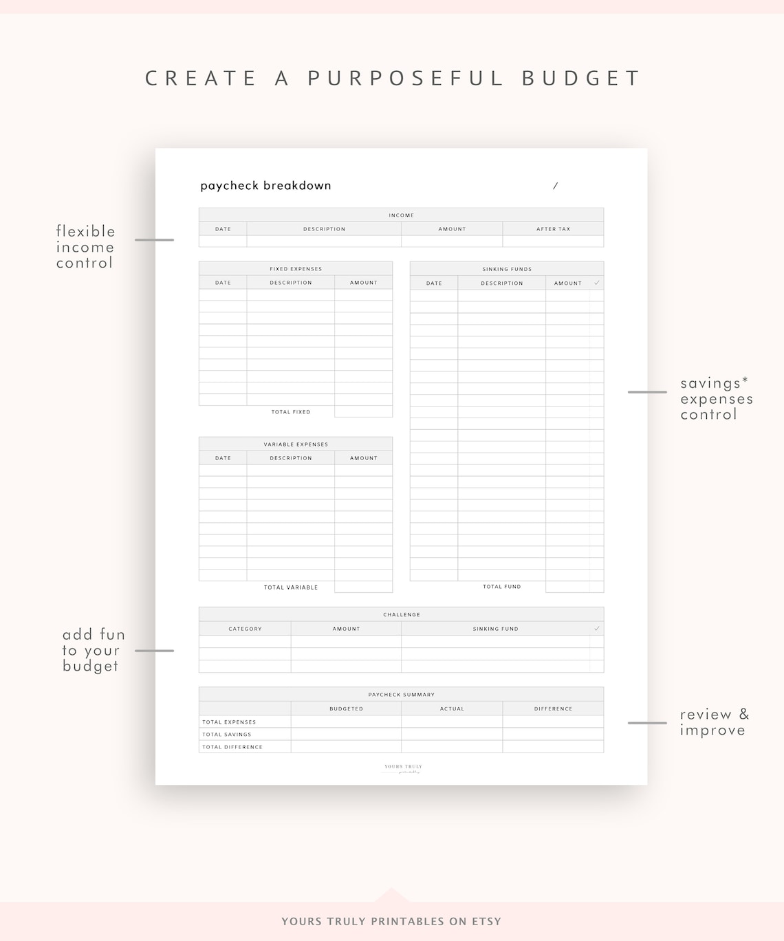 Paycheck Budget Template DIGITAL DOWNLOAD Printable PDF Etsy