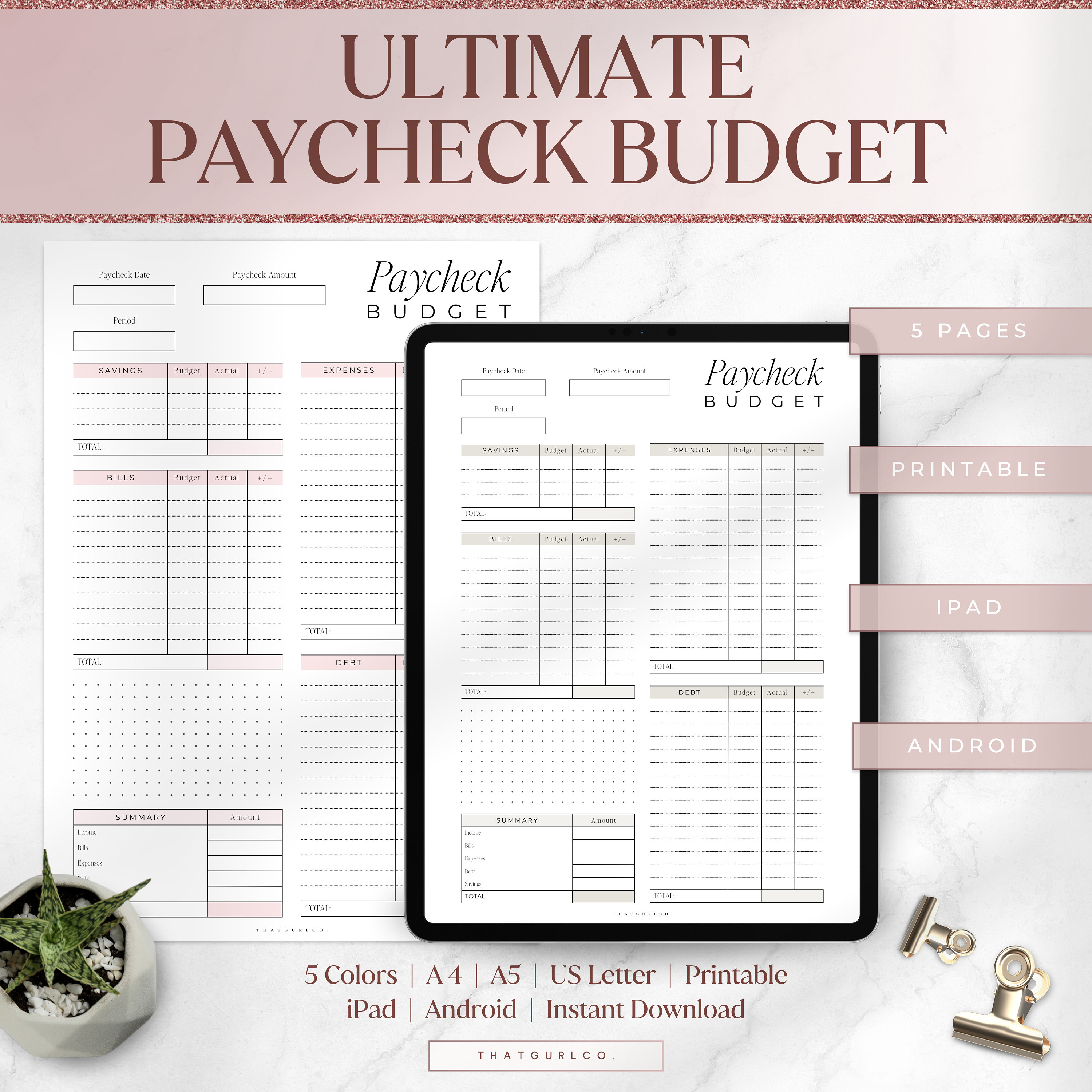 Printable and Digital Paycheck Budget Template Download PDF for