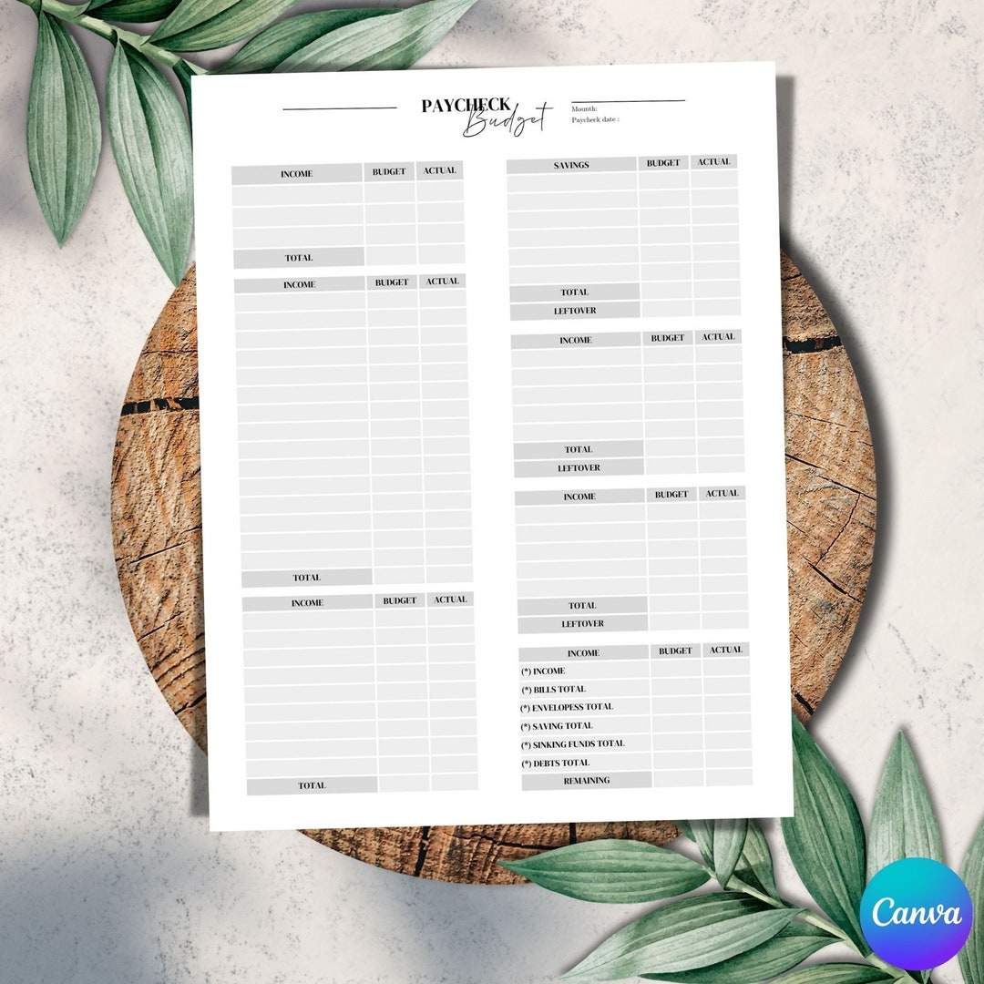 Paycheck Budget Printable Template Paycheck Budget Planner Editable