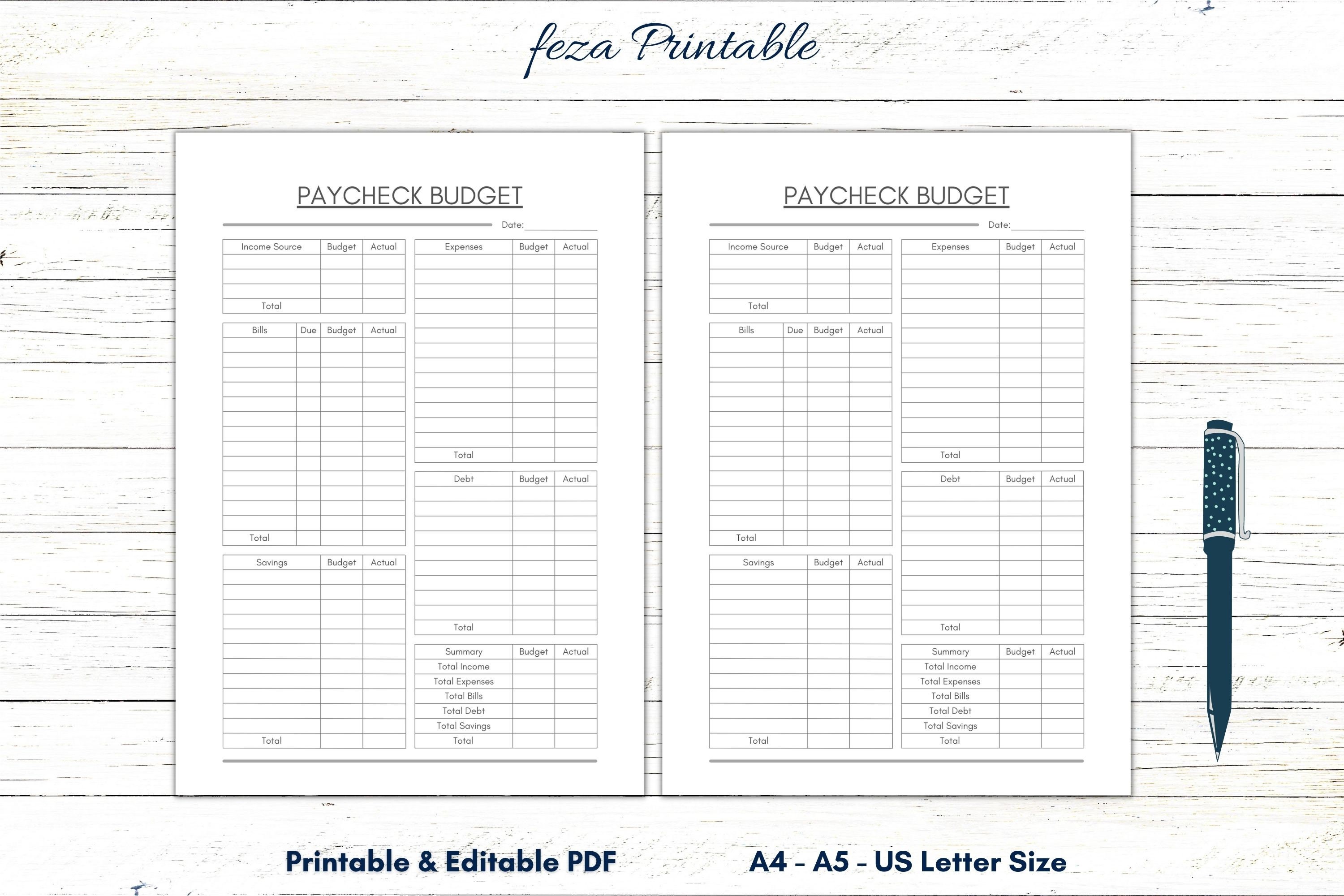 Paycheck Budget Printable PDF A4 A5 Letter Half Etsy