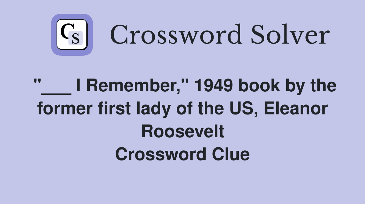 I Remember quot 1949 book by the former first lady of the US Eleanor