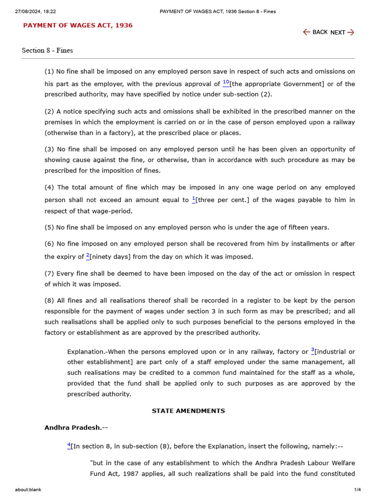 PAYMENT OF WAGES ACT 1936 Section 8 Fines PDF