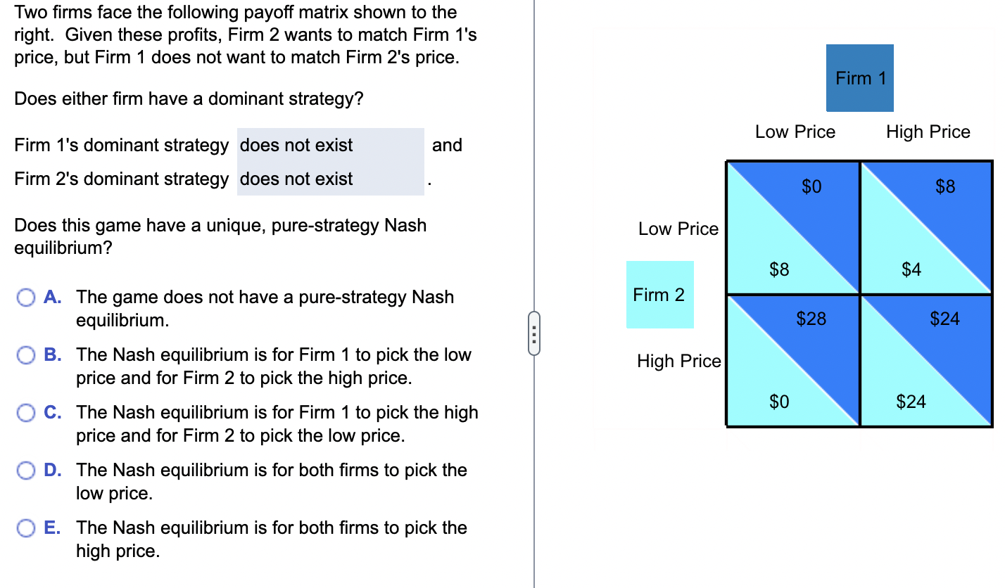 Solved Two firms face the following payoff matrix shown to Chegg com
