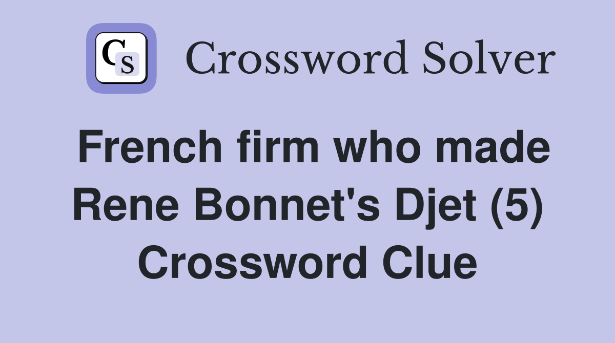 French firm who made Rene Bonnet #39 s Djet (5) Crossword Clue Answers