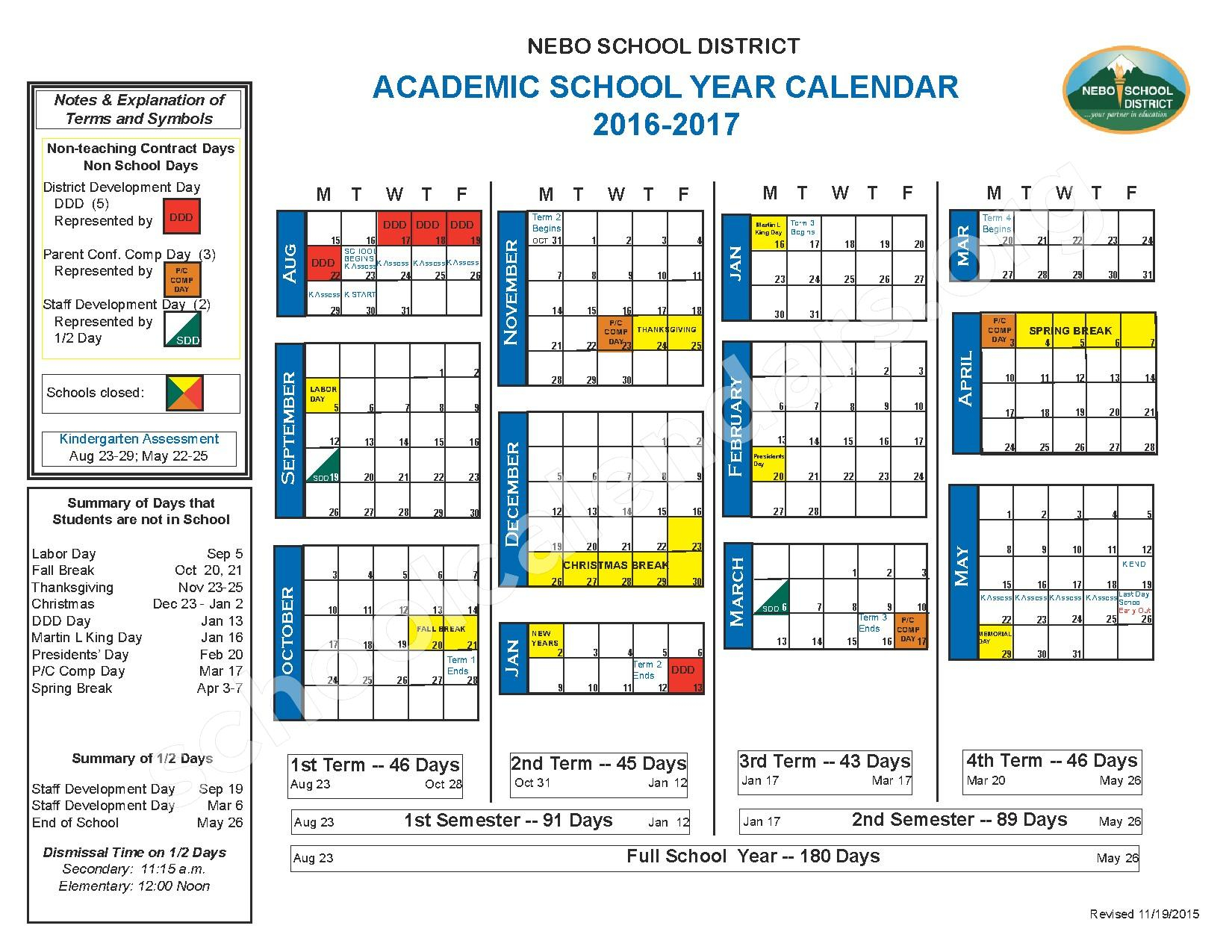 2016 2017 School Calendar Payson High School Payson UT