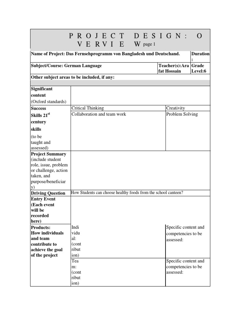 Designing Your Own PBL Project Planning Form Download Free PDF