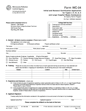 Fillable Online pca state mn Form WC 04 Initial and Renewal