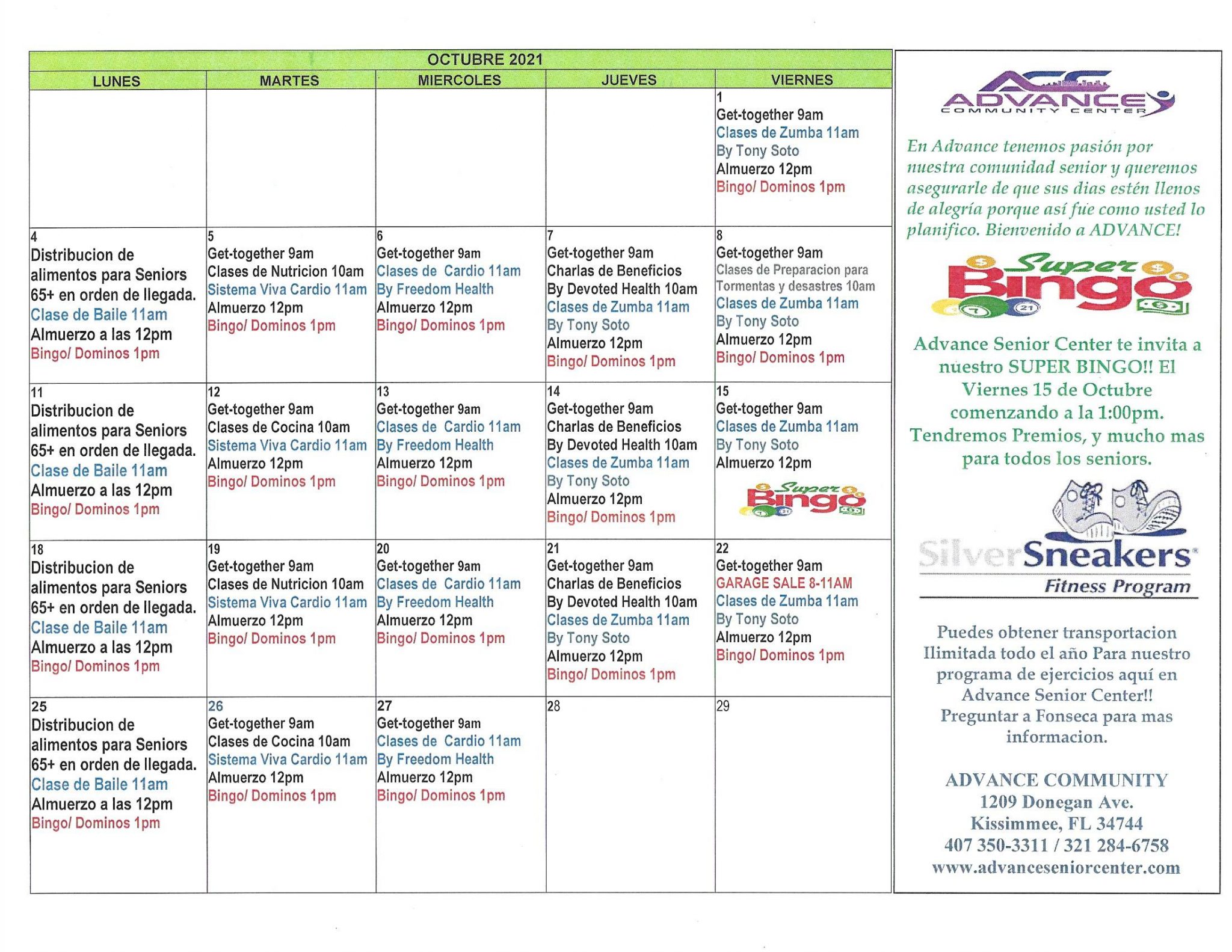 Calendar Advance Senior Center