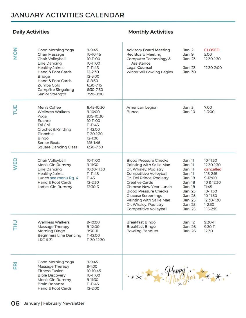 Senior Center Calendar Jan2025 Commissioner Matt Gray
