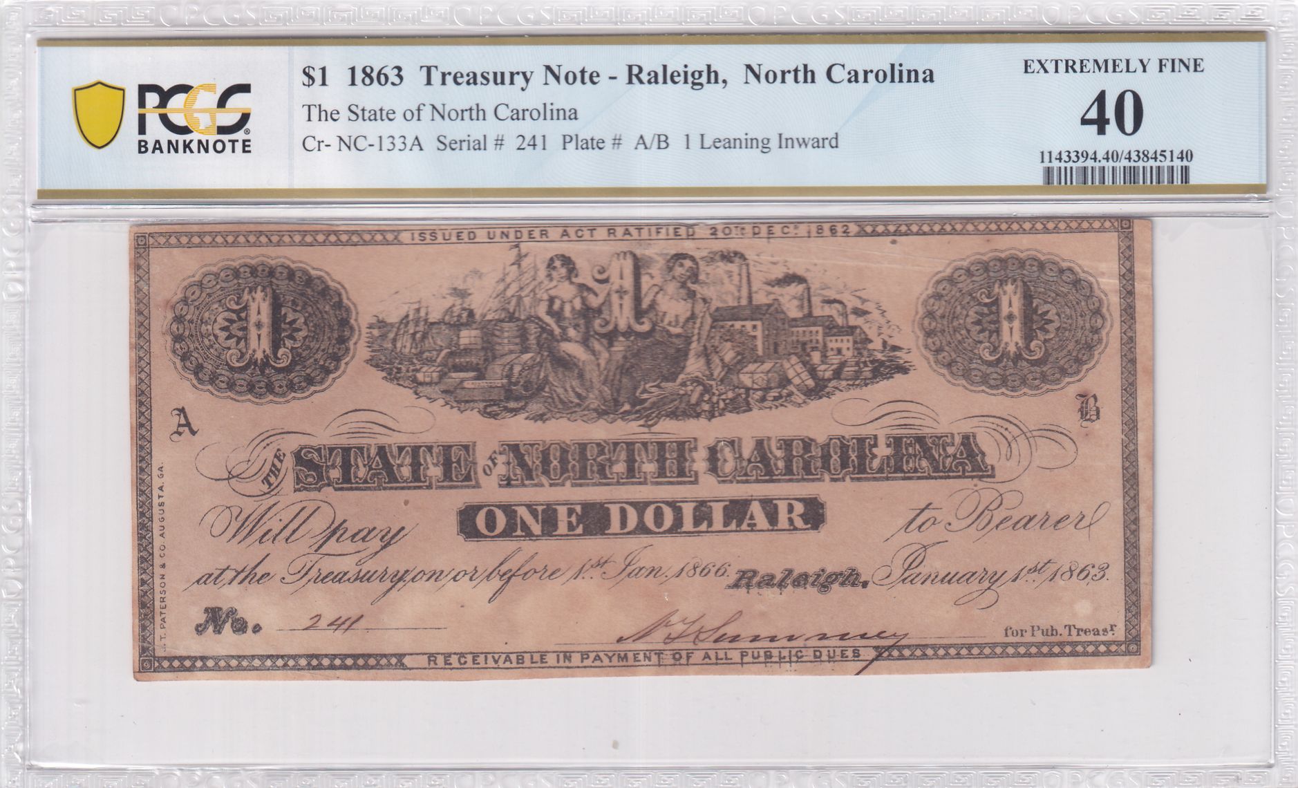 PCGS Certificate Verification Banknote Details for Cert #43845140
