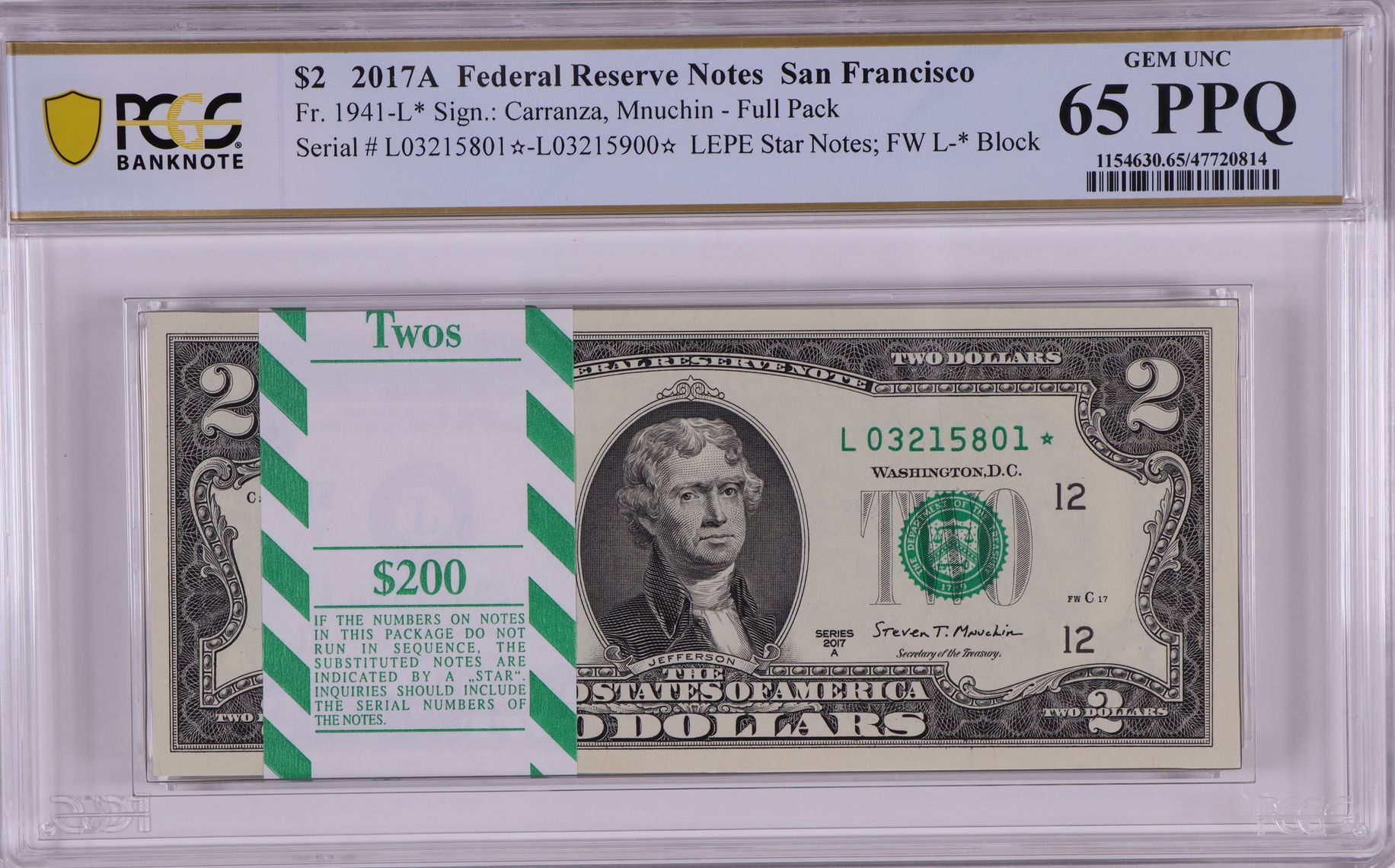 PCGS Certificate Verification Banknote Details for Cert #47720814