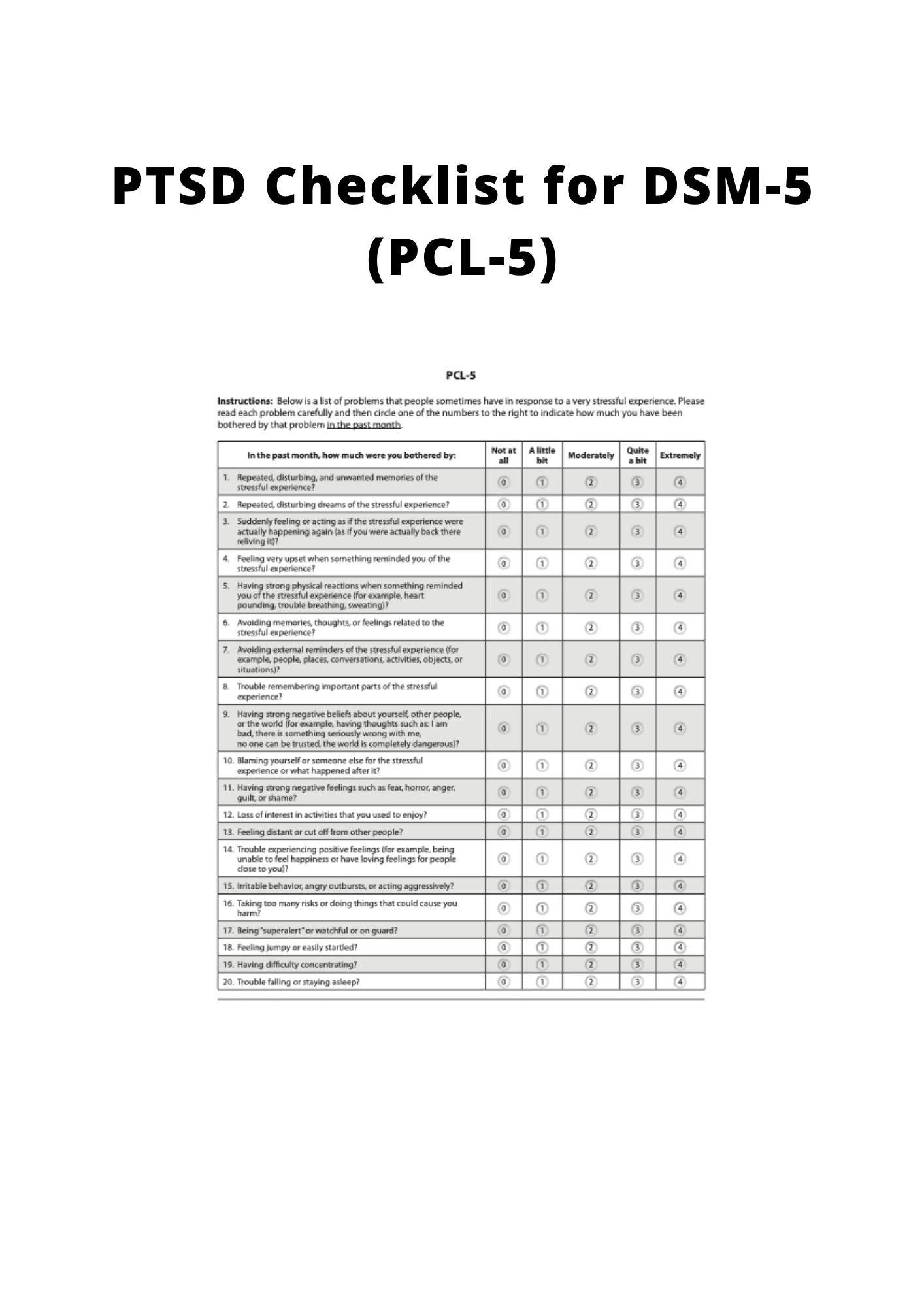 PTSD Checklist 5 (PCL 5) Example Free PDF Download