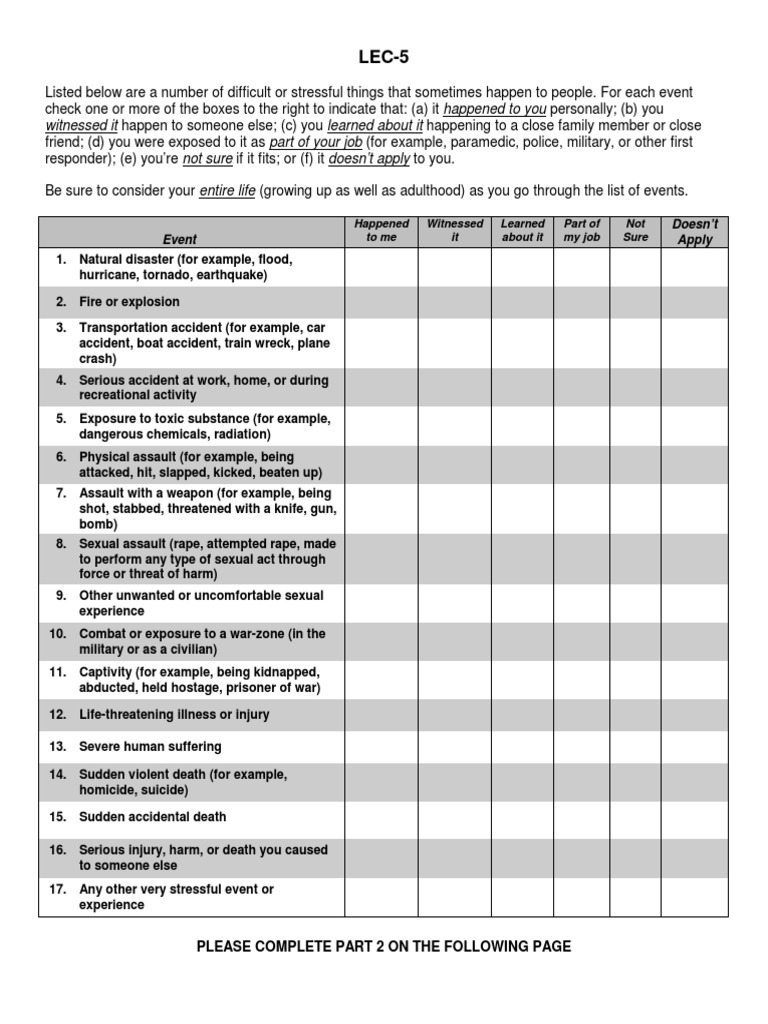 PCL 5 With LEC 5 and Extended Criterion A Assessment Anger Feeling
