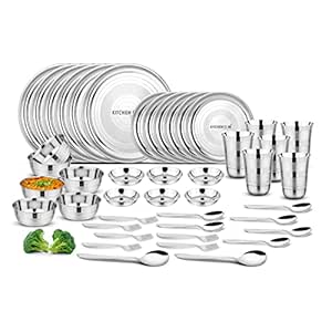 KITCHEN CLUE Stainless Steel Dinner Set of 44 Pcs Silver Kitchen Set