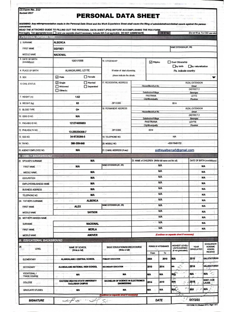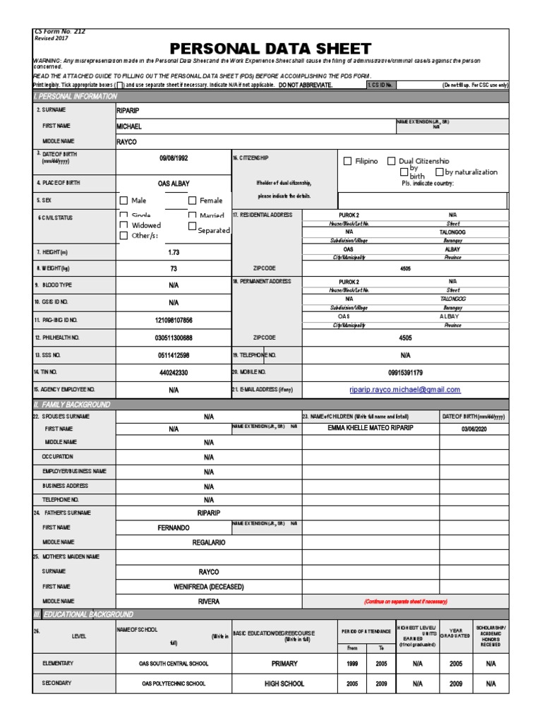 CSC Personal Data Sheet PDS 2017 NAVOTAS PDF