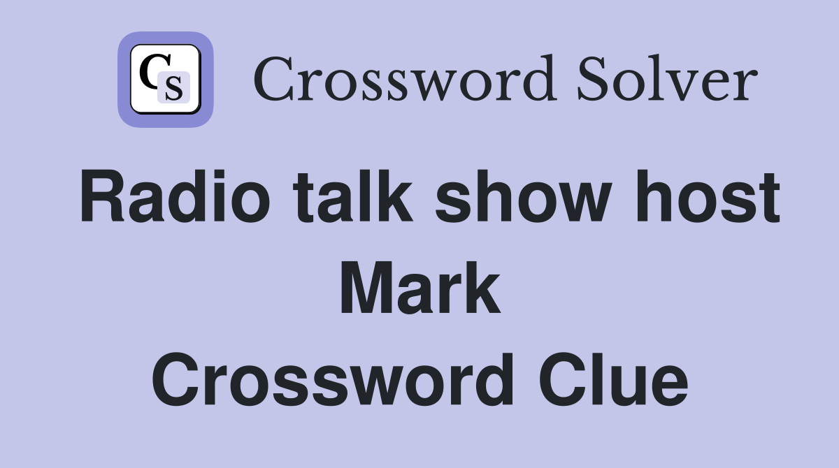 Radio talk show host Mark Crossword Clue Answers Crossword Solver