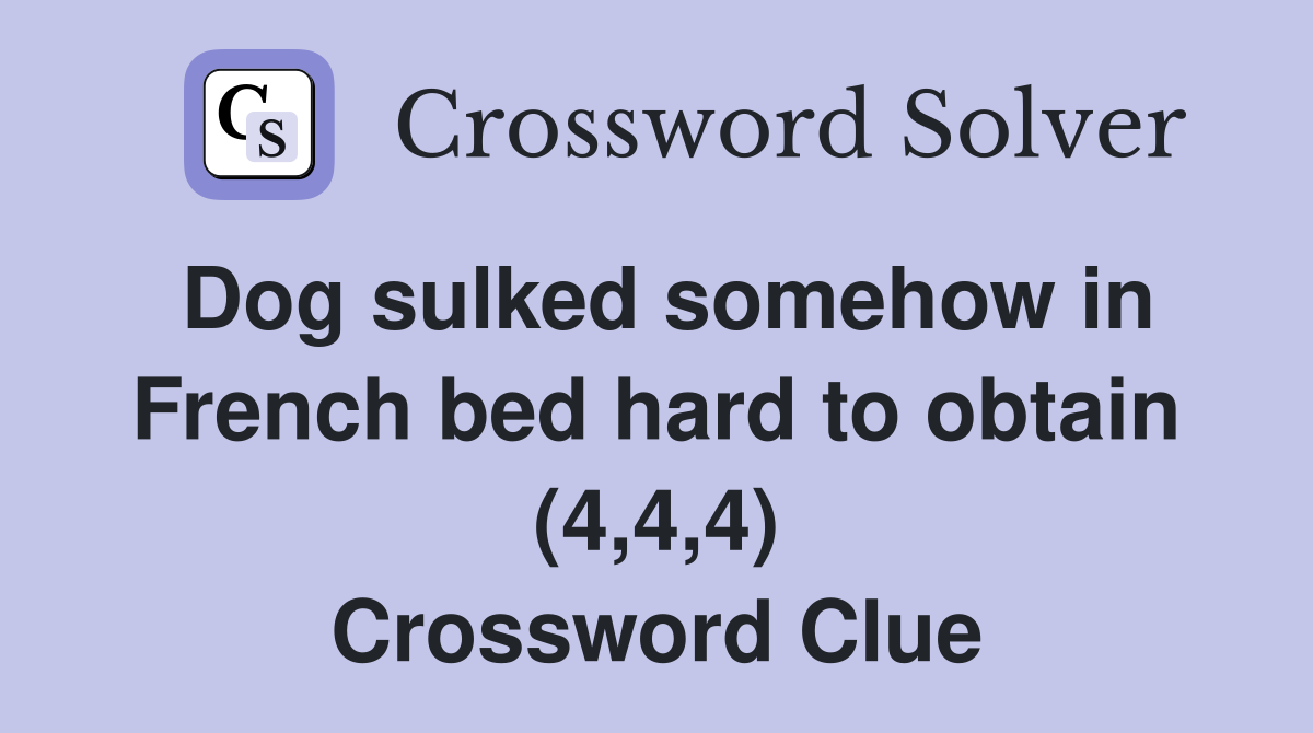 Dog sulked somehow in French bed hard to obtain (4 4 4) Crossword
