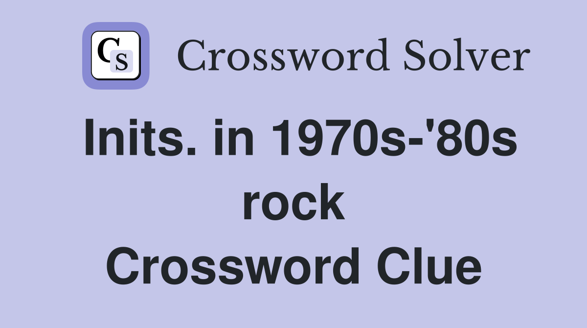 Inits in 1970s #39 80s rock Crossword Clue Answers Crossword Solver