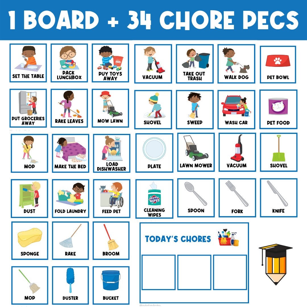 1 BOARD 34 CHORE PECS Children #39 s Chore Boards Daily Etsy