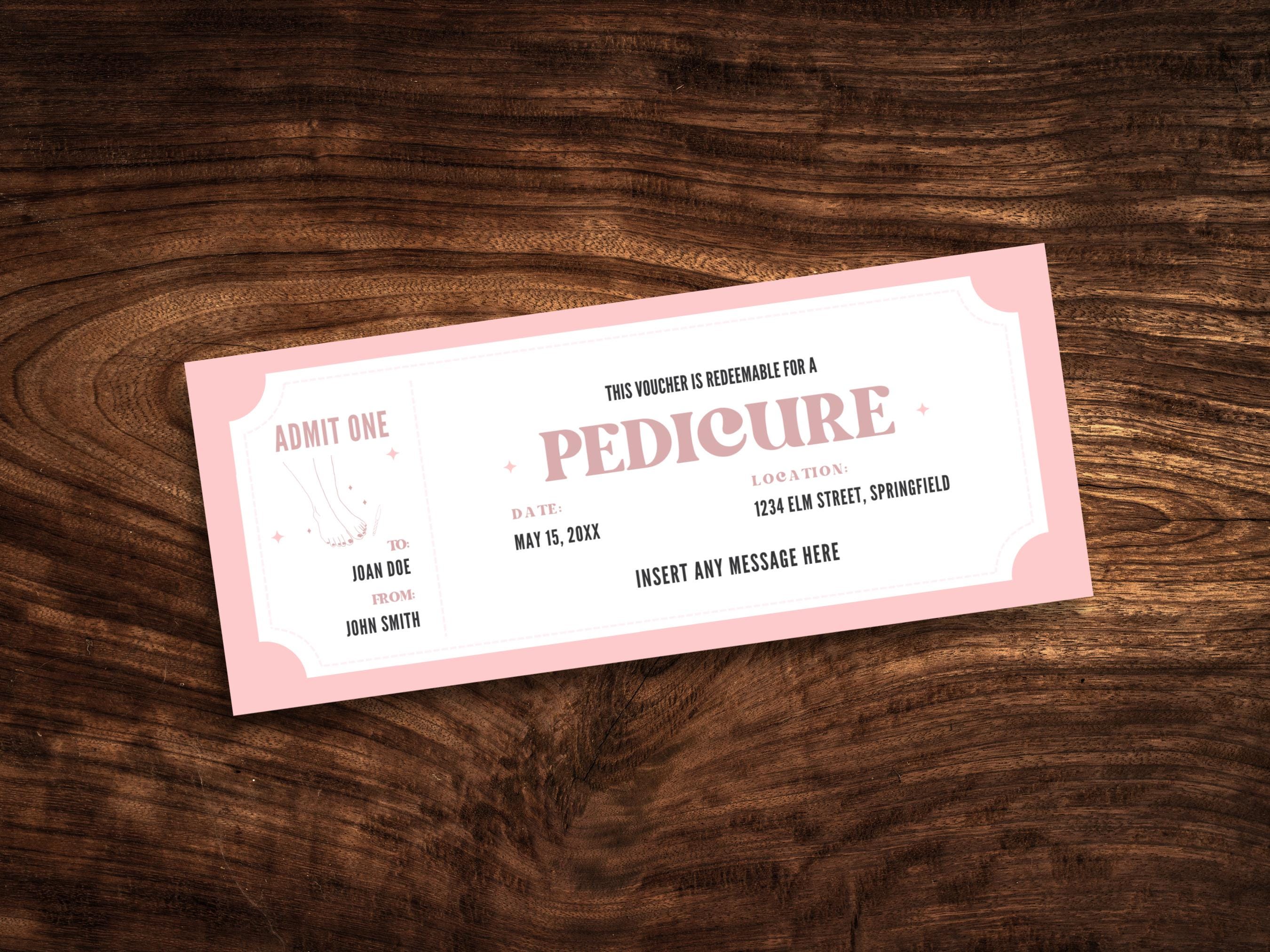 Editable Pedicure Coupon Template Custom Pedi Ticket Gift Certificate