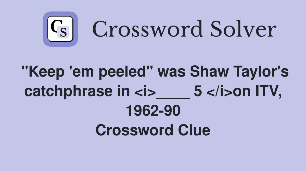 quot Keep #39 em peeled quot was Shaw Taylor #39 s catchphrase in 5 on ITV 1962