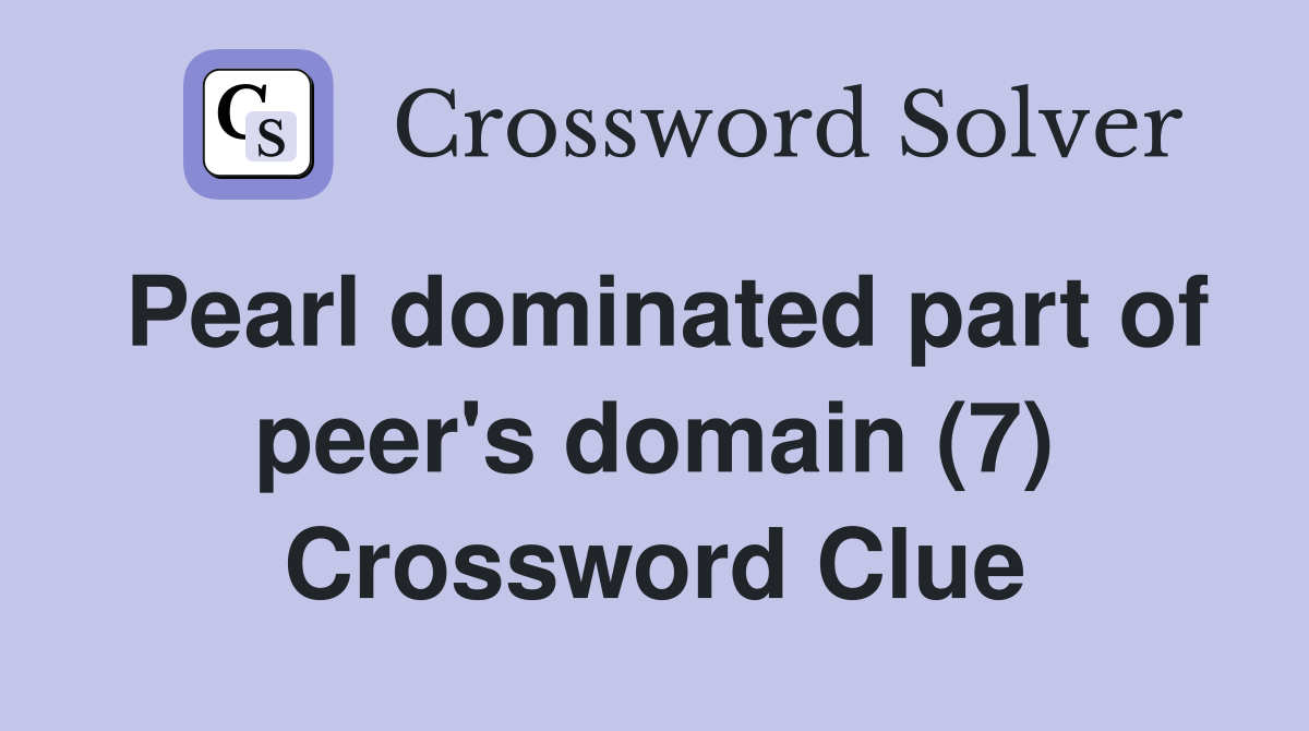 Pearl dominated part of peer #39 s domain (7) Crossword Clue Answers