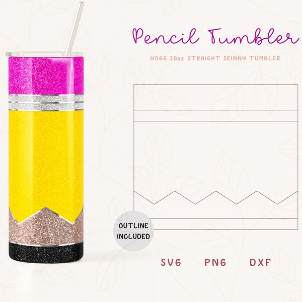 Pencil Tumbler SVG DXF PNG 20 Oz Skinny Tumbler Template Etsy