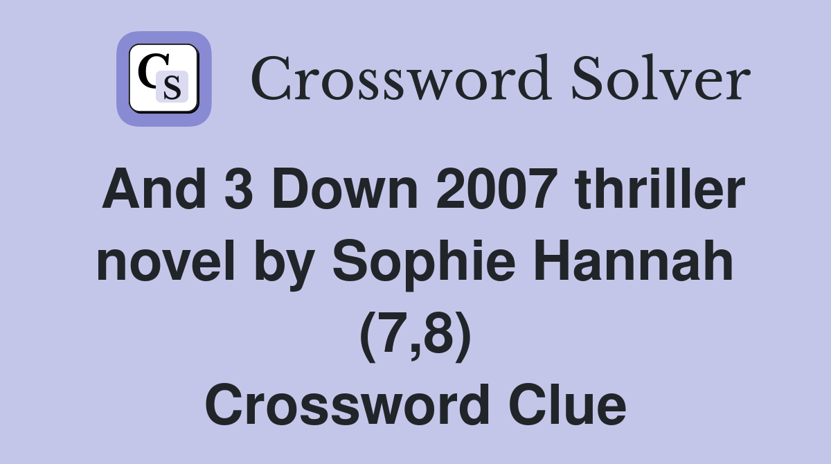 And 3 Down 2007 thriller novel by Sophie Hannah (7 8) Crossword Clue
