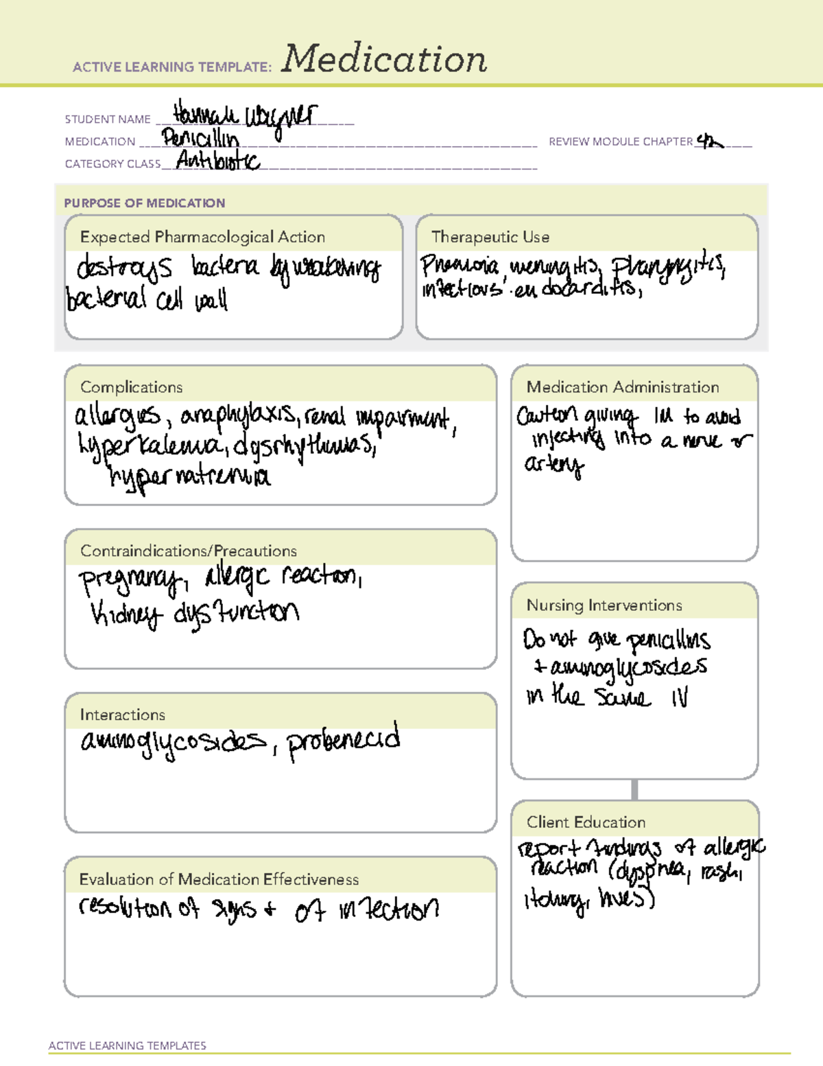 Penicillin medication template ACTIVE LEARNING TEMPLATES